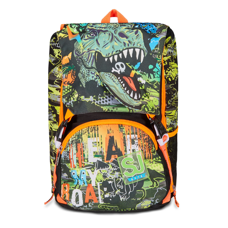 - Ciao! Sono REXME, lo zaino estensibile SJ GANG con cui vai a scuola e con cui puoi giocare aprendo e chiudendo la mia BOCCA DA T-REX! Ho un doppio scomparto spazioso, di cui puoi aumentare facilmente la capienza tramite le zip laterali per poter accogliere e distribuire in modo ottimale libri, quaderni e tutto ciò che ti serve per la tua giornata, potendo sfruttare anche la tasca frontale. Inoltre, sono davvero comodo da indossare sulle spalle, grazie a schienale e spallacci confortevoli. In più, il fondo integrato mantiene la mia struttura inalterata, garantendo la stabilità del contenuto anche a pieno carico.