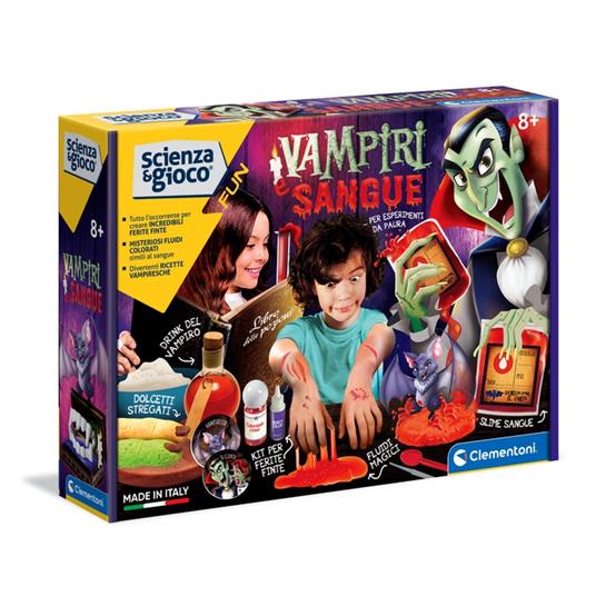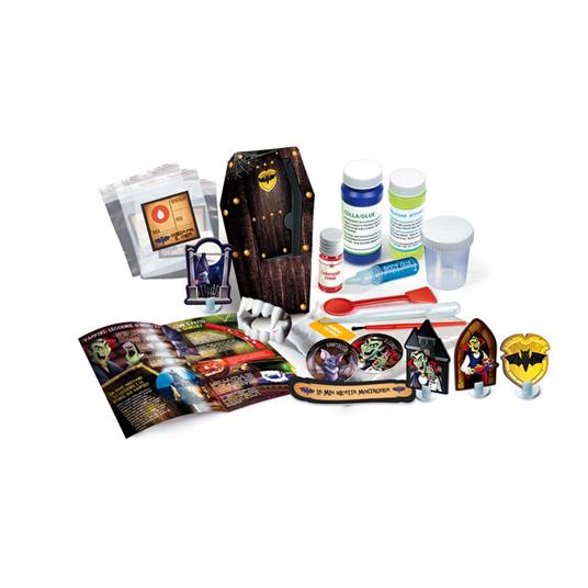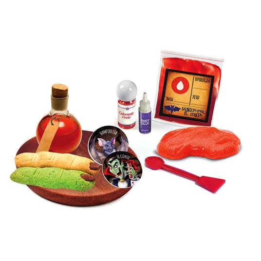 Il bambino potrà divertirsi a sperimentare con la scienza horror, imparando i principi della chimica in modo coinvolgente e realizzando tanti slime diversi a prova di vampiro!